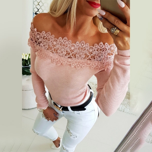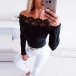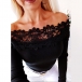 Sexy Lace Spliced Boat Neck Long Sleeve Slim Fit T-shirt(It falls small)