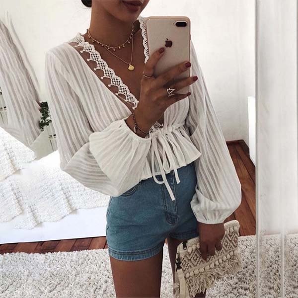 Add a dash of sexy and flirty vibes to your wardrobe with this long sleeve top. The lace spliced