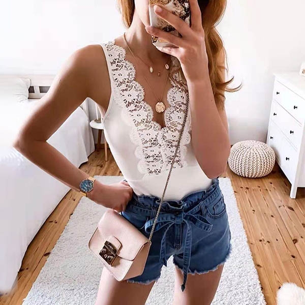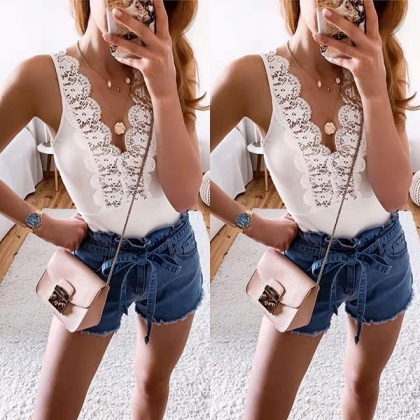 The lace spliced deep v-neck design makes this piece look so sexy and flirty,and the fit