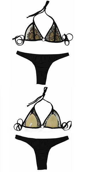 When walking on the beach with this bikini set,all eyes would be focused on you. Its lace spliced design