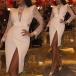 Look exceptionally stunning when you slip into this dress. The lace spliced and slit hem design will