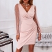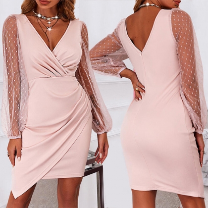 Sexy Lace Spliced Long Sleeve Slit Hem Slim Fit Party Dress