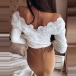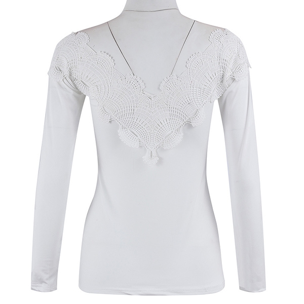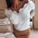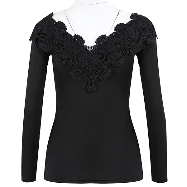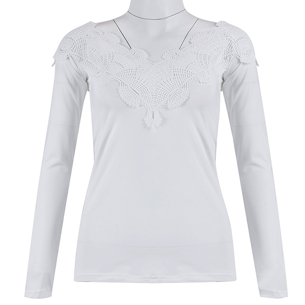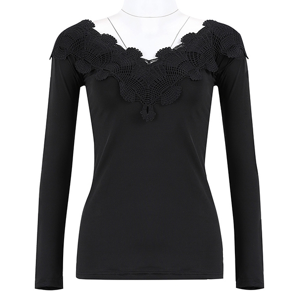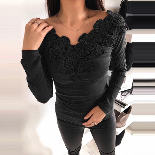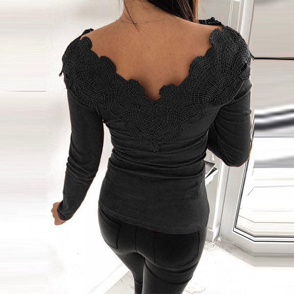 When it comes to a cozy yet feminine style,you can trust in this t-shirt! Solid color style,the lace spliced