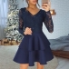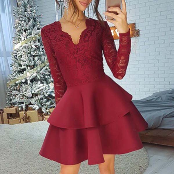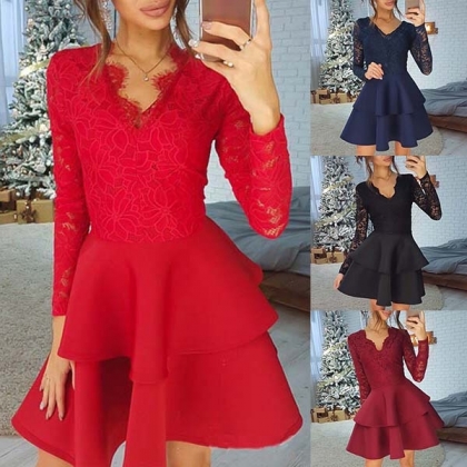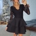 Sexy Lace Spliced Long Sleeve V-neck Dress