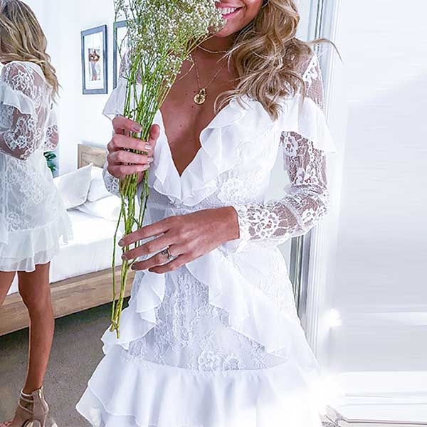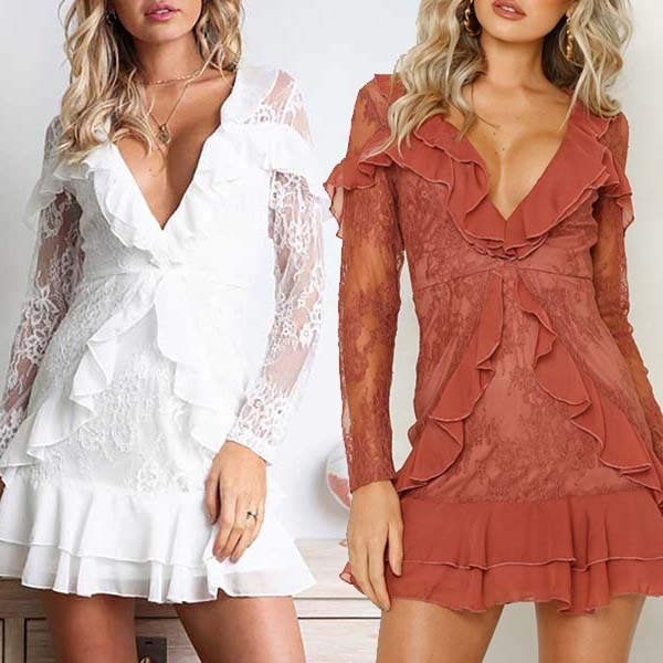 As for a sexy and flirty look,this dress can help you achieve that. Its alluring details like deep v-neck,