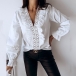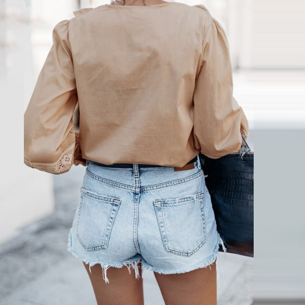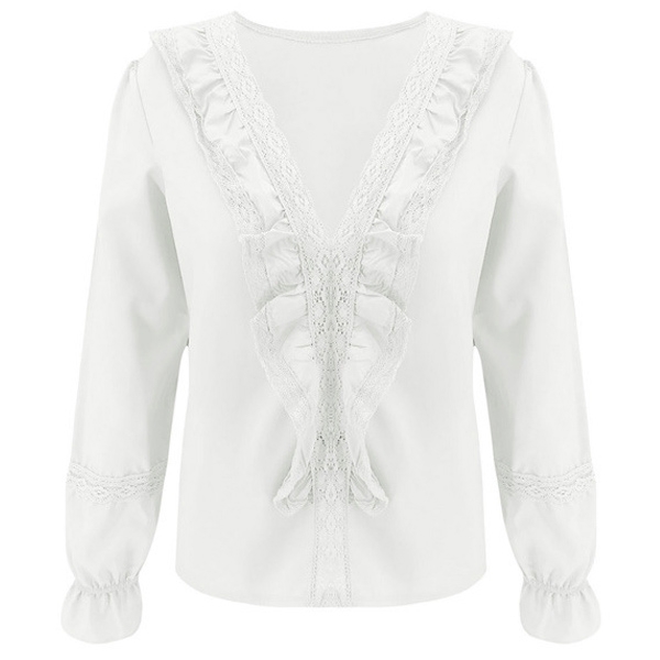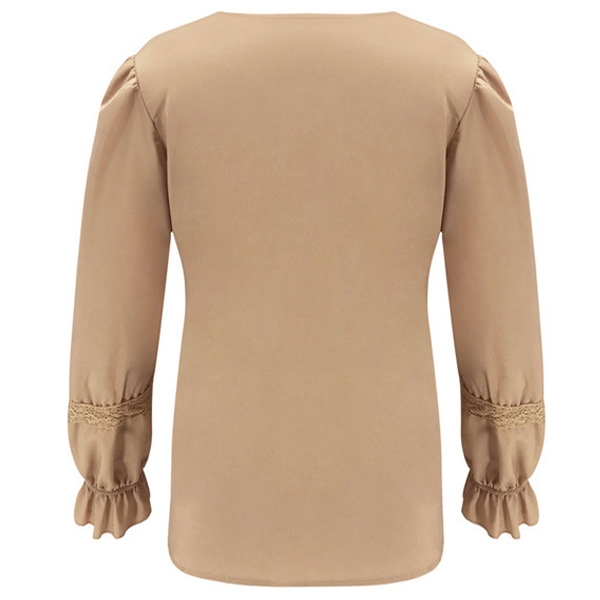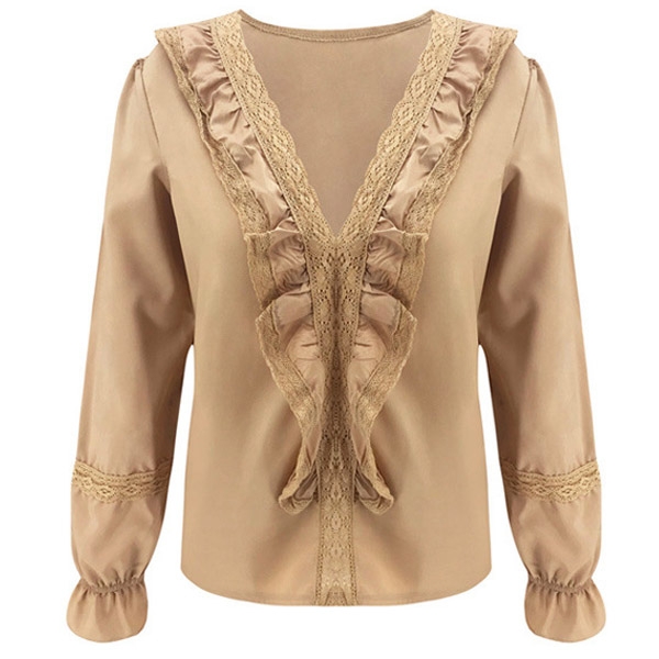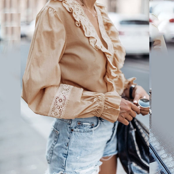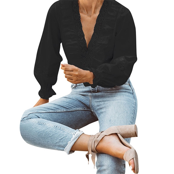 the lace spliced deep v-neck and ruffle details will further enhance your feminine appeal while making