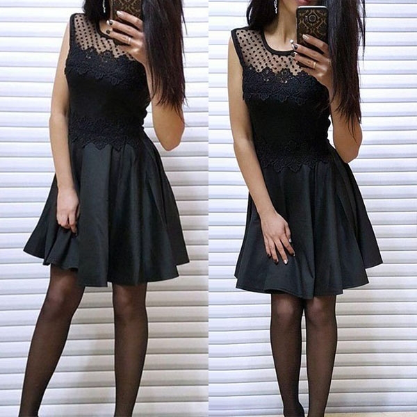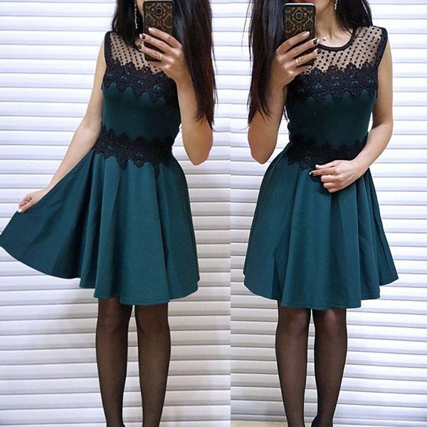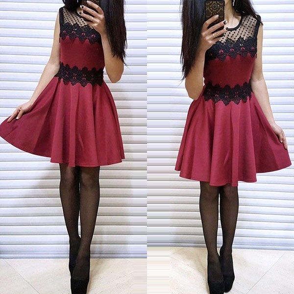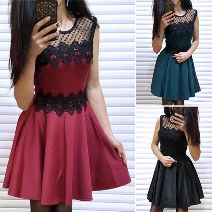 with sleeveless,round neck and high waist design,the most attractive part is the lace spliced details.