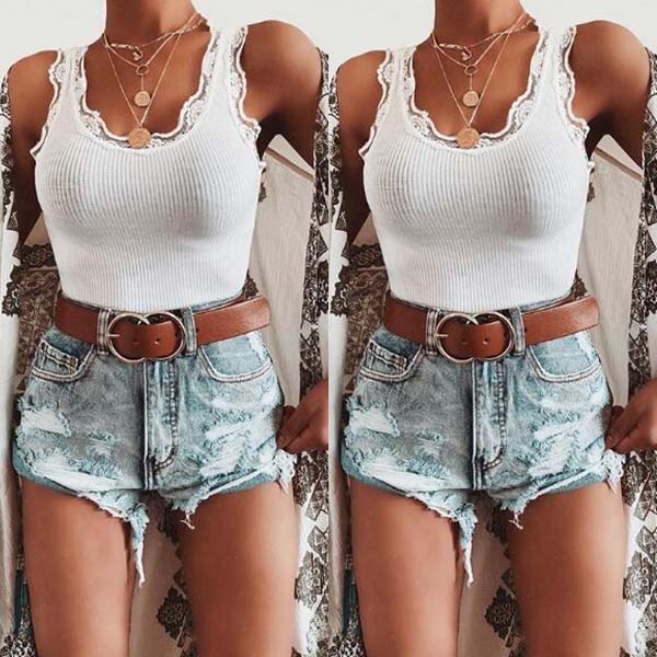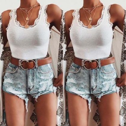As the weather is so hot,I think you need this tank top to keep cool.The lace edge design makes