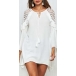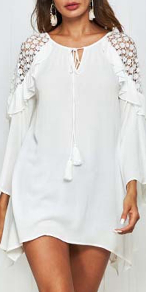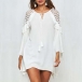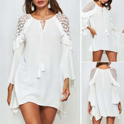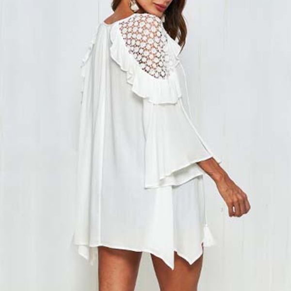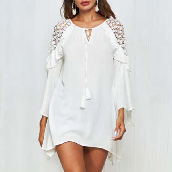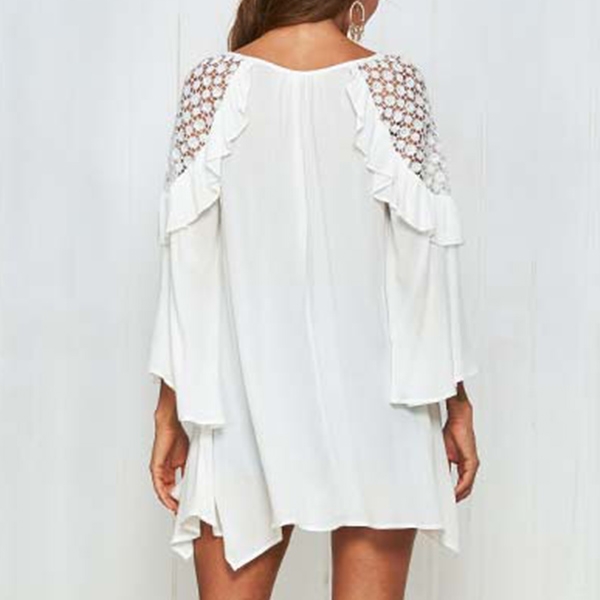 Sexy Lace Spliced Trumpet Sleeve Solid Color Loose Dress