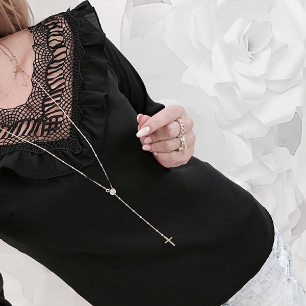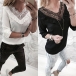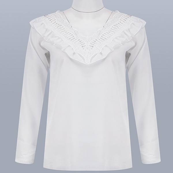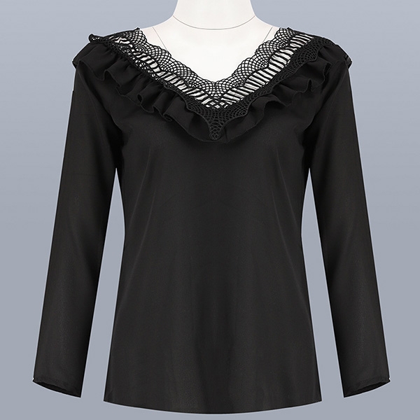You can count on this top to finish a charming daily look. Comes with a solid color,the lace splice v-neck and