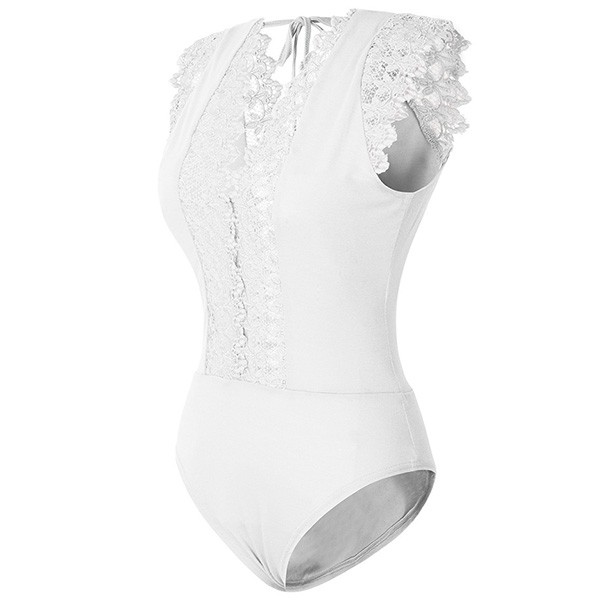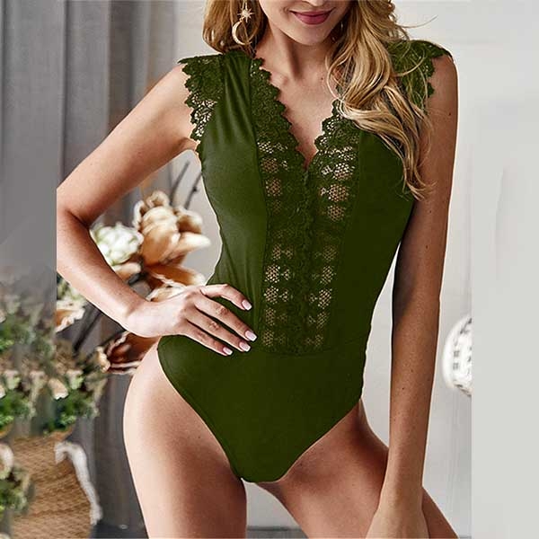 v-neck and a fit silhouette,sexy and charming. Moreover,the lace spliced design can exude your