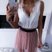 the lace spliced deep v-neck design can lend you a dash of sexy and feminine vibes. Thanks to