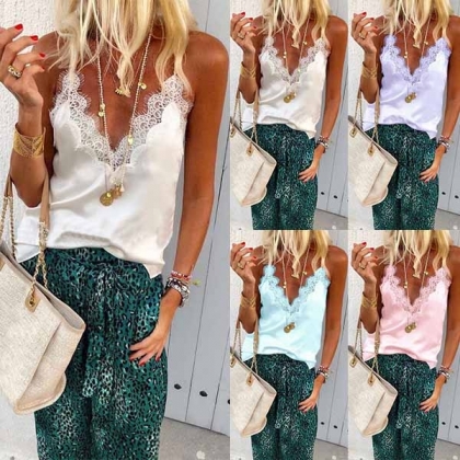 This cami top is perfect fit for these sun-soaked summer days. Solid color style,the lace spliced and v-neck