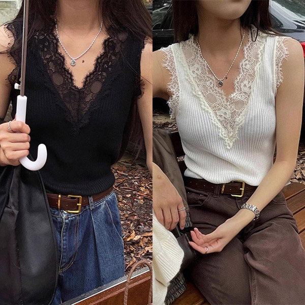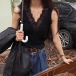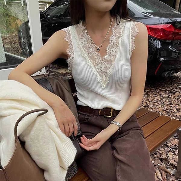 Sexig spetssnörad V-ringad linne i enfärgat material