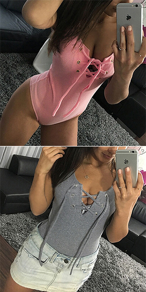 Solid color style,its lace-up deep v-neck design makes it look sexy,while its stretch fabric