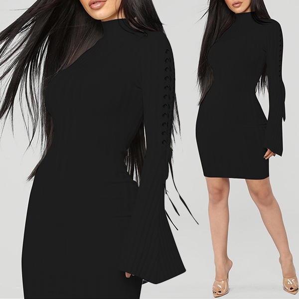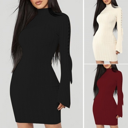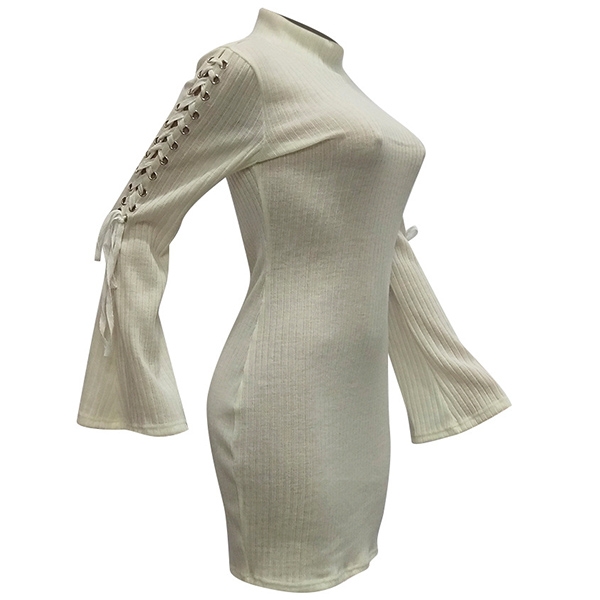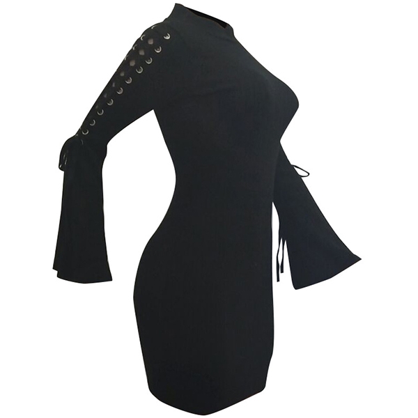 It comes with a solid color,the mock neck,lace-up details and trumpet sleeve design make it look so