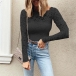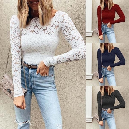 Sexy Long Sleeve Boat Neck Slim Fit Lace Top