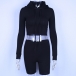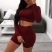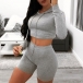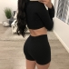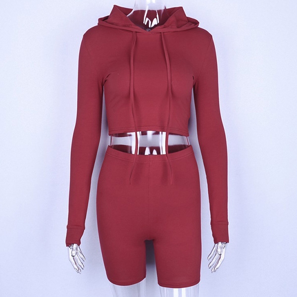 Enfärgad stil, inklusive en långärmad croptop med huva och shorts med hög midja, den mjuka och andas
