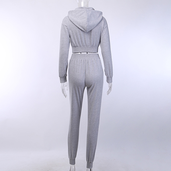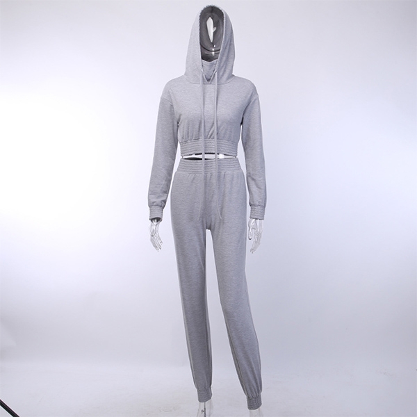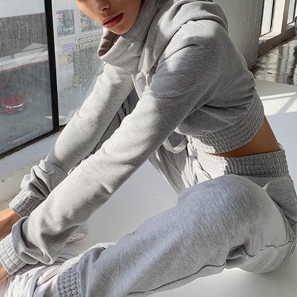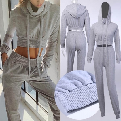 Solid color style,including a long sleeve hooded crop top and a high waist pants,this two-piece set can