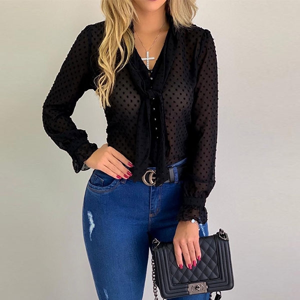 Exude your sexy and feminine side through this long sleeve blouse. See-through style,