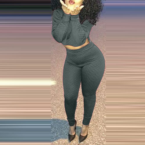 Solid color style,including a long sleeve turtleneck crop tops and a high waist pants,this two-piece set
