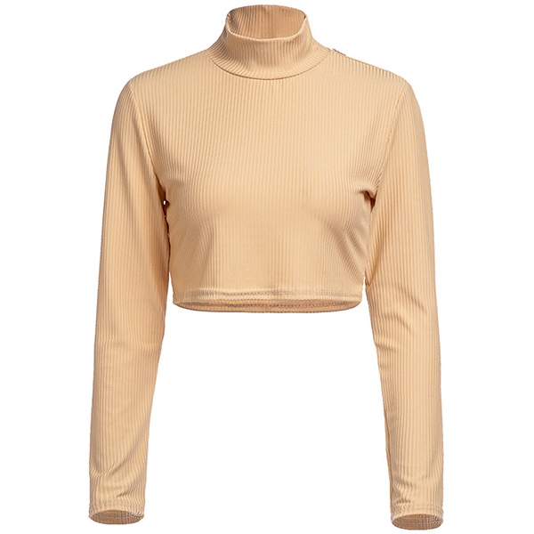 solid color,finished with long sleeve,turtleneck and a fit silhouette,this crop top can offer you a