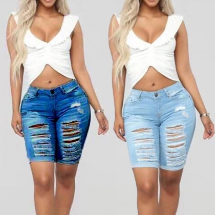 while the low-waist and hollow out ripped details add the sexy and distinctive vibes. Try to match with a crop