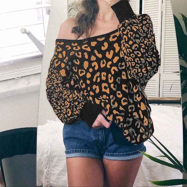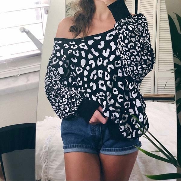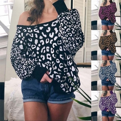 you this sweatshirt! The leopard printed details and oblique shoulder design can offer you a sexy and
