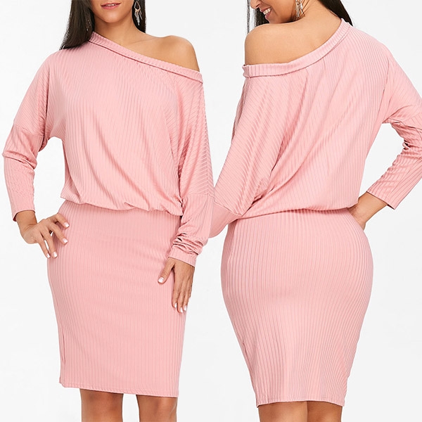 This dress comes with a sweet pink tone,elegant yet charming. And the oblique shoulder design will lend you