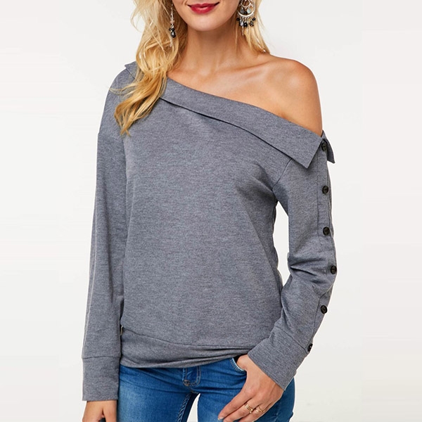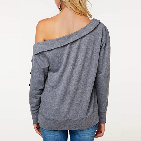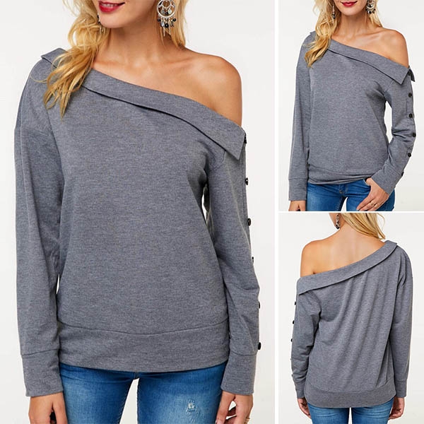 You can have a cozy yet sexy style in this sweatshirt. Comes with a solid color,the oblique shoulder