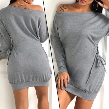 Sexy Oblique Shoulder Side Lace-up Long Sleeve Sweatshirt