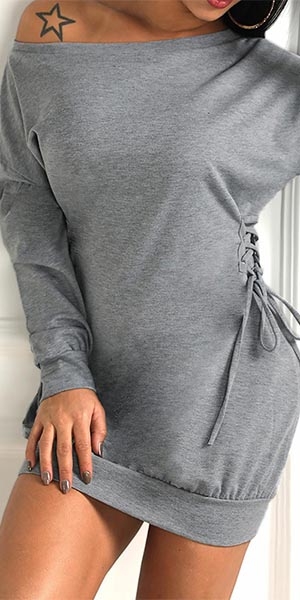 Boasts a solid color,crafted from soft and breathable fabric,this piece can ensure you a long-lasting comfort. Moreover,the oblique shoulder and side lace-up design make this piece look more attractive and distinctive. In these early autumn days,this piece can easily strike your mind.