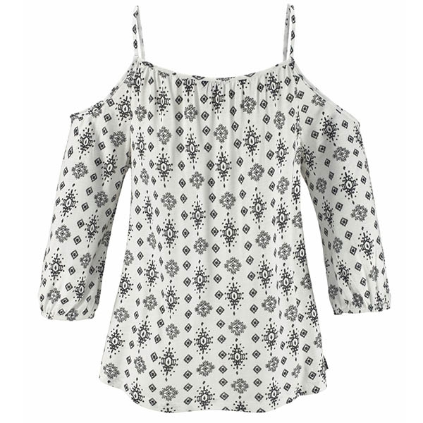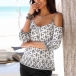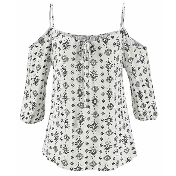 Its chic printed details make this t-shirt look so eye-catching. Moreover,the off-shoulder and sling design