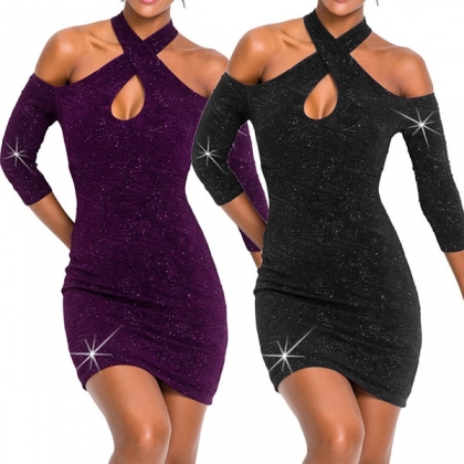 Obviously,all eyes would be focused on you once you don this dress. Crossover halter and off-shoulder