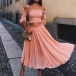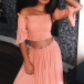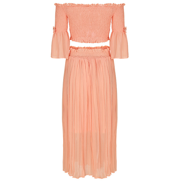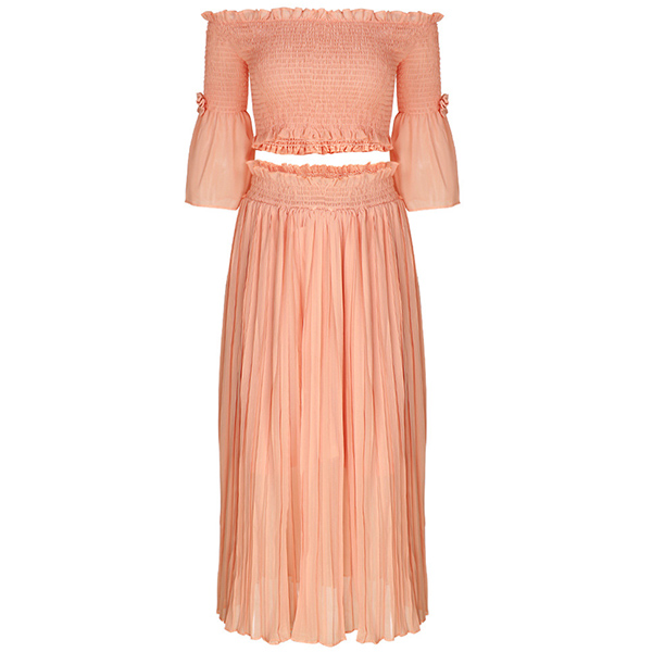 off-shoulder crop top and a high waist skirt,this two-piece set can exude your charming feminine appeal