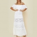 The off-shoulder boat neck design gives you the chance to showcase your charming shoulder as