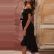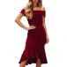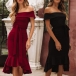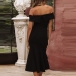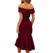 on this dress. Solid color style,the off-shoulder boat neck and fishtail hem design will enhance your