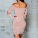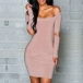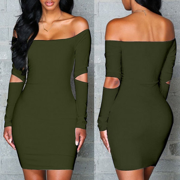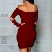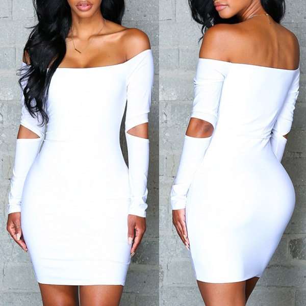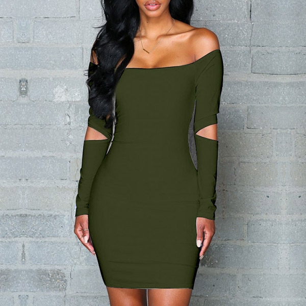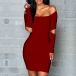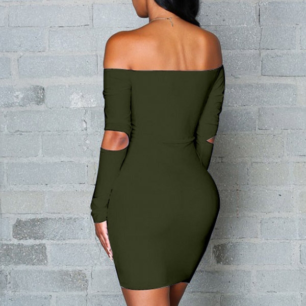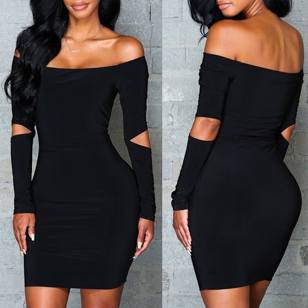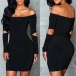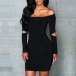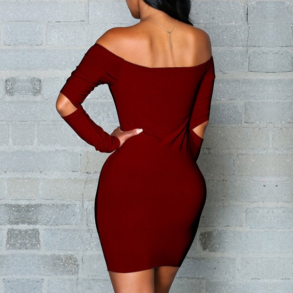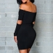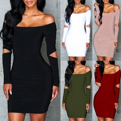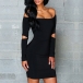 Sexy Off-shoulder Boat Neck Hollow Out Long Sleeve Tight Dress