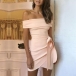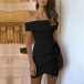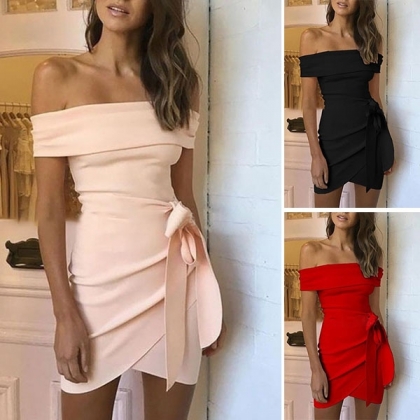 the off-shoulder boat neck design gives you the chance to showcase your charming shoulder