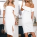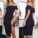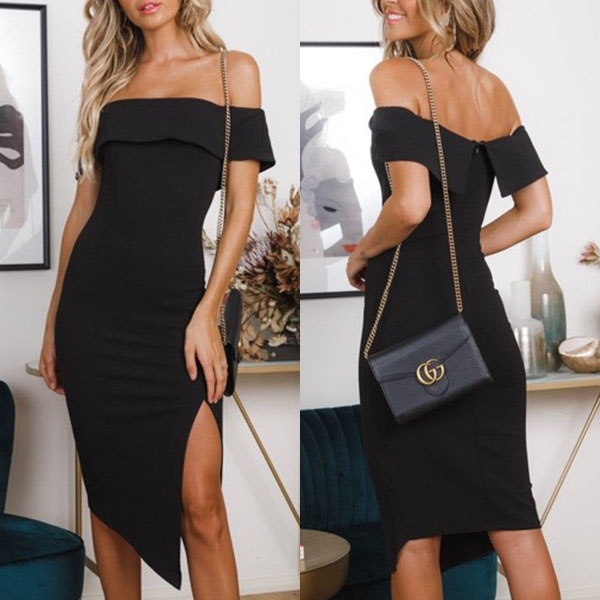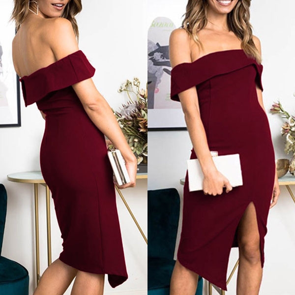 piece into your smart ensemble? Boasts a solid color,the off-shoulder boat neck,irregular hem with slit design