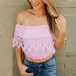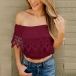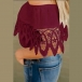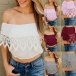 It comes with a solid color,the off-shoulder boat neck and lace spliced design will boost its charm.