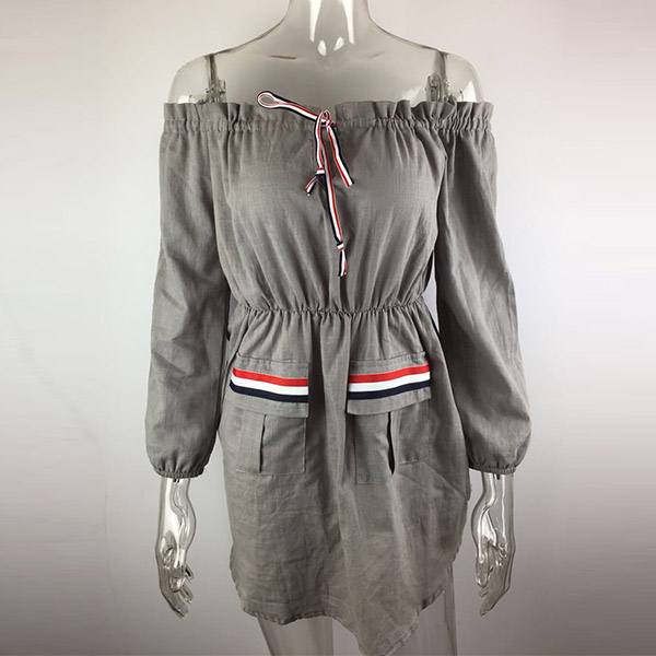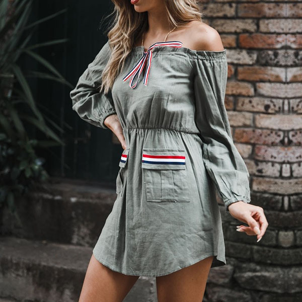 The off-shoulder boat neck design can lend you a sexier look,while the elastic waist design will