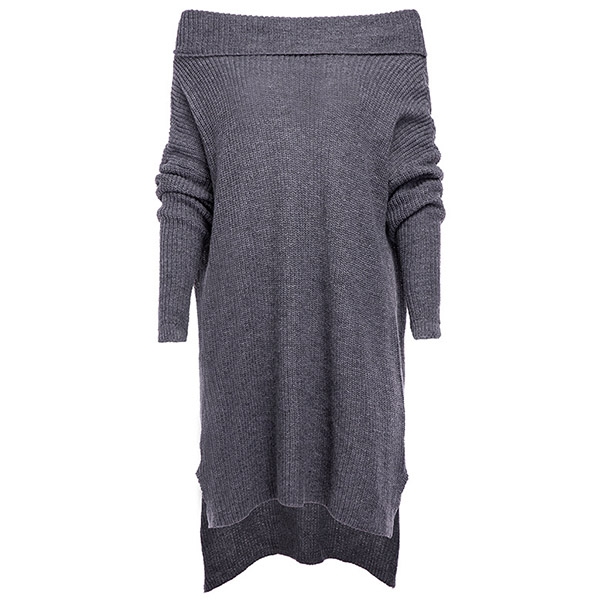 a solid color,the off-shoulder boat neck and high-low hem design make this piece look more attractive.