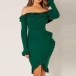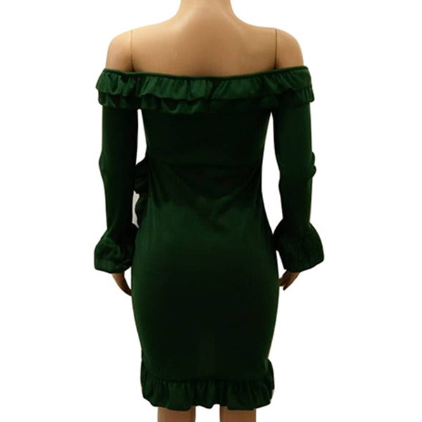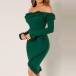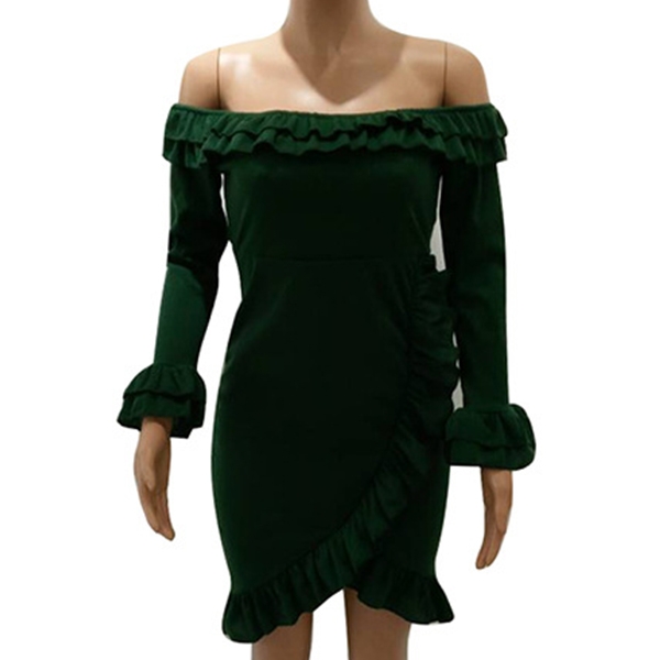 Finished with long sleeve,off-shoulder boat neck,an irregular hem and a fit silhouette,this dress can