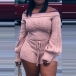 including a long sleeve boat neck crop top and a high waist shorts,this two-piece set also can exude your charming feminine appeal.