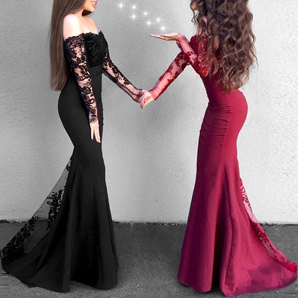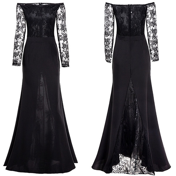 off-shoulder boat neck and lace spliced design make this piece look so sexy and alluring. Just need