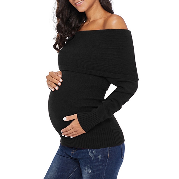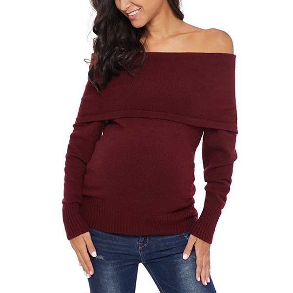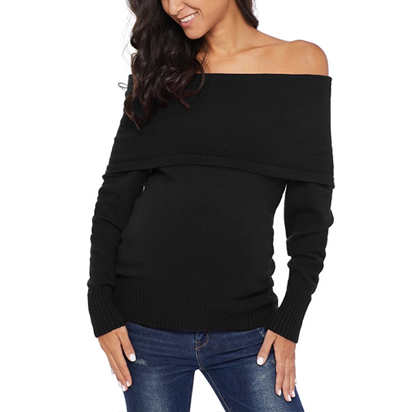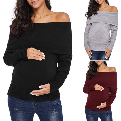 Sexy Off-shoulder Boat Neck Long Sleeve Maternity Sweater