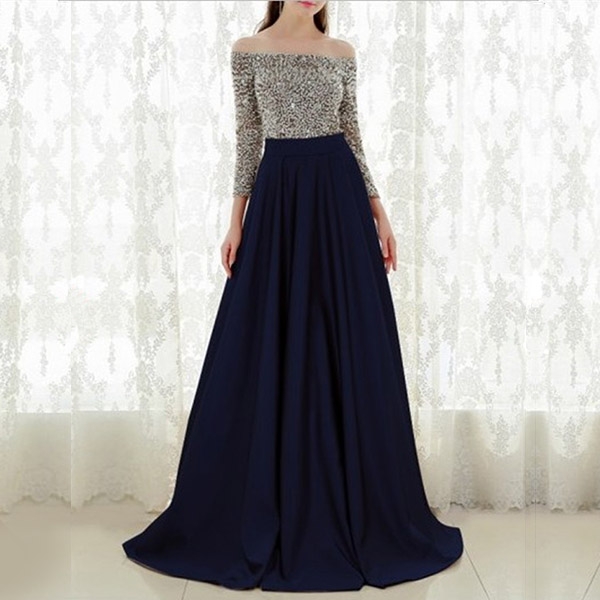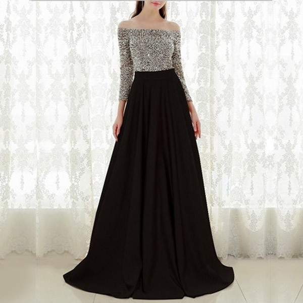 The off-shoulder boat neck and sequin details will offer you a more charming look,while the high