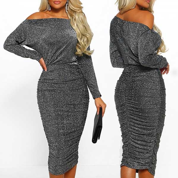 finished with long sleeve,off-shoulder boat neck and a fit silhouette,this dress knows how to express