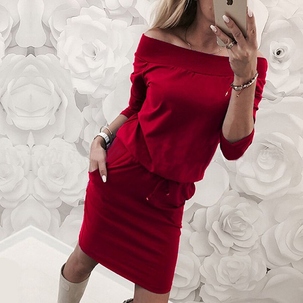 Solid color style,the off-shoulder boat neck design can express your sexy and feminine appeal,while the